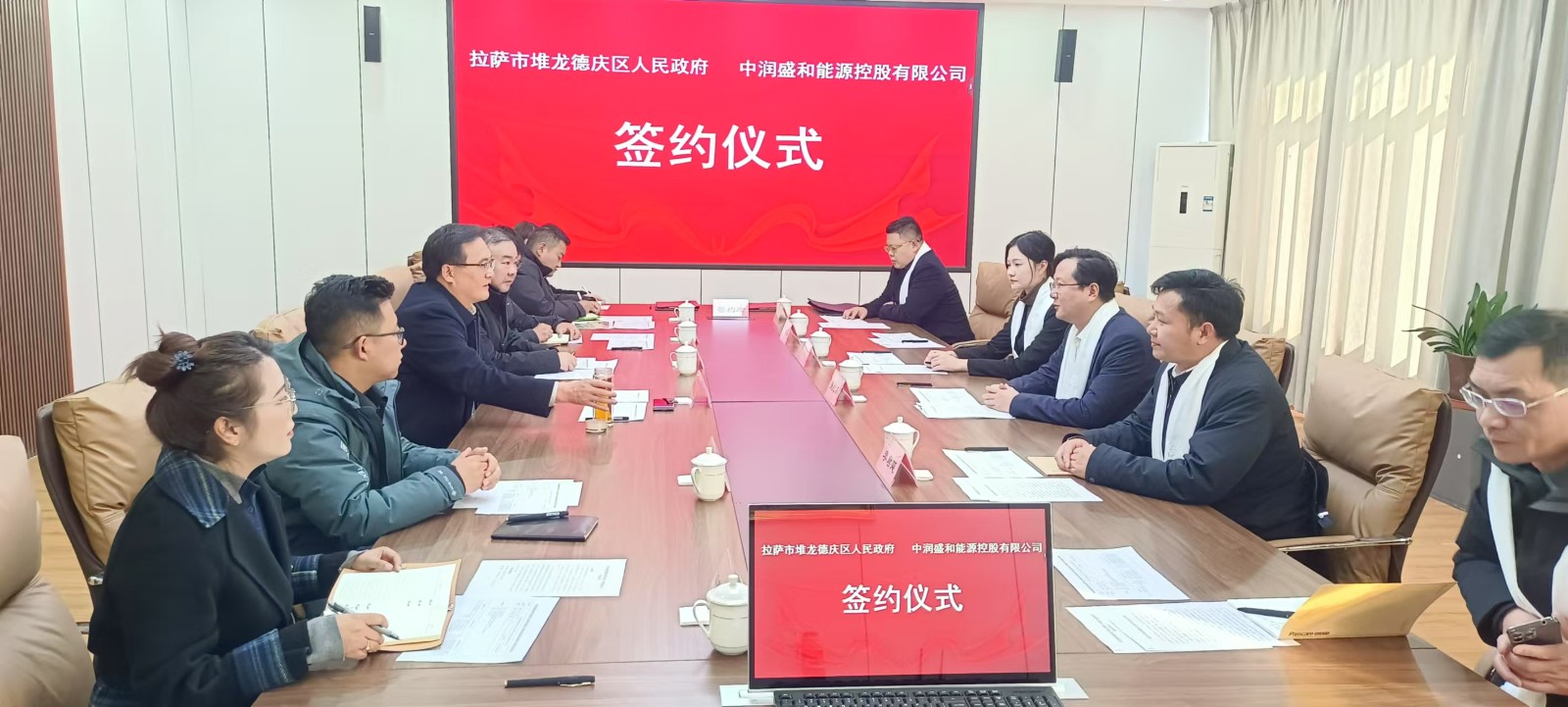 2025年1月14日在拉萨市堆龙德庆区人民政府,拉萨市堆龙德庆区委副书记、区长石运本与十大滚球体育app董事长夏红兵就《关于建设拉萨市堆龙德庆区微风风力发电项目》举行签约仪式。